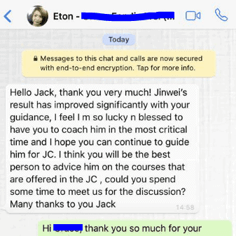 At Eton, I am able to approach my Maths tutor easily for clarification of the doubts I have in my Maths concepts, even after lessons. He had not only educated me academically, but also psychologically.